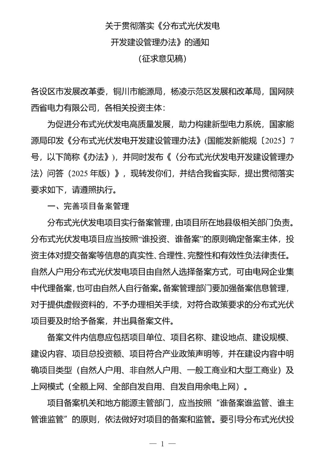 附件:关于贯彻落实《分布式光伏发电开发建设管理办法》的通知(征求意见稿)