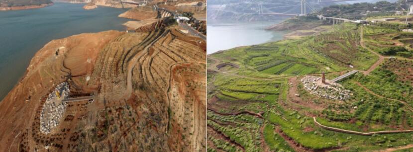 乌东德库区消落带生态修复前后对比