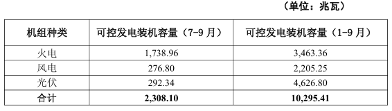 截至2025年9月30日,公司总装机容量82,702.516兆瓦,其中火电煤机48,474兆瓦、火电燃机8,184.54兆瓦、水电9,204.73兆瓦、风电10,344.89兆瓦、光伏6,494.356兆瓦。2025年第三季度,公司新增装机容量1,812.839兆瓦,其中火电煤机640兆瓦、火电燃机1,049.27兆瓦、风电118.75兆瓦、光伏4.819兆瓦。