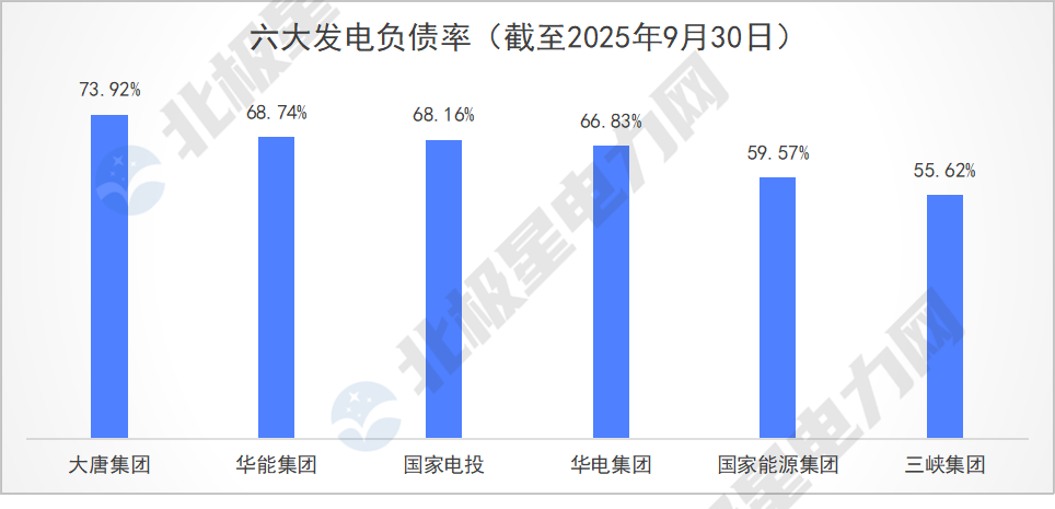 2025年前三季度,国家能源集团的资产总额、营业总收入、利润总额均占据榜首,展现出全面领先优势;国家电投紧随其后,资产总额与营业总收入均排名第二;三峡集团则位列利润总额的第二位。在财务稳健性上,三峡集团与国家能源集团凭借卓越的现金流,将负债率控制在60%以下。
