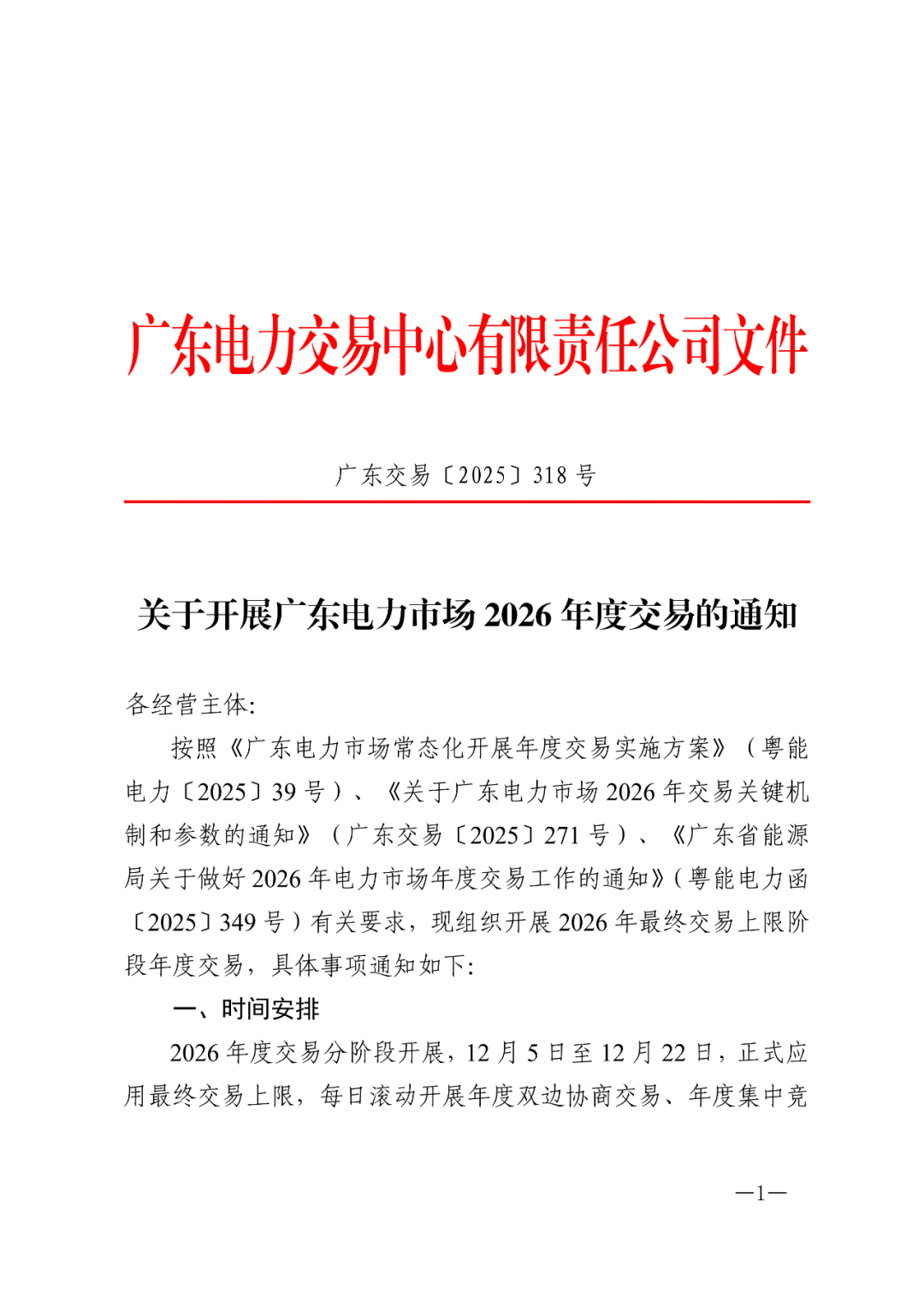 12月4日,广东电力交易中心发布关于开展广东电力市场2026年度交易的通知。
