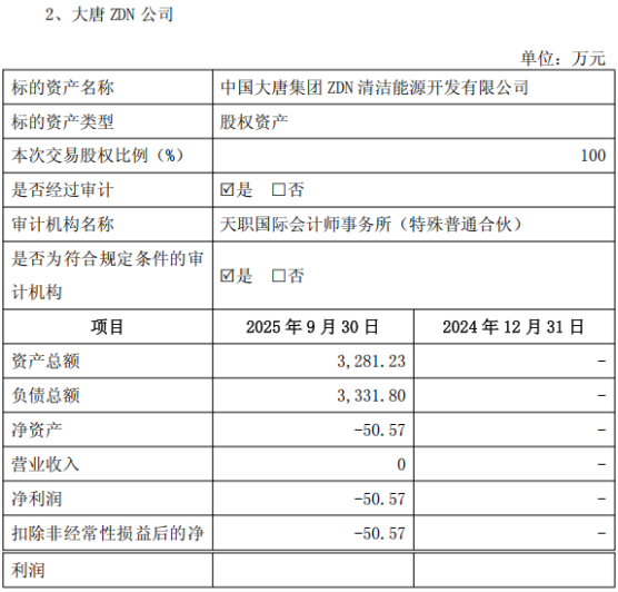 因2024年末大唐ZDN公司实缴资本为0元,所以尚无财务数据。2025年,大唐集团对大唐ZDN公司注册资本进行了部分实缴,因此,截至2025年9月末,大唐ZDN公司资产总额达到约0.33亿元,但也还没有营业收入,净利润为负。