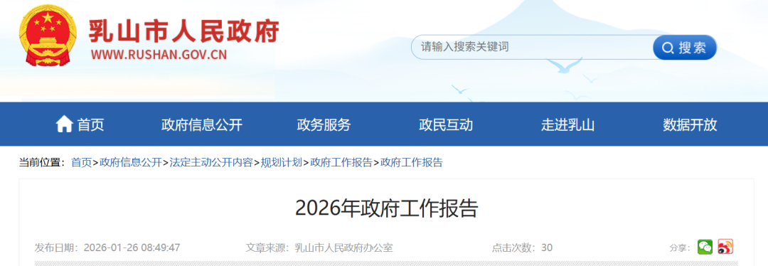 1月26日,乳山市人民政府发布《2026年政府工作报告》。