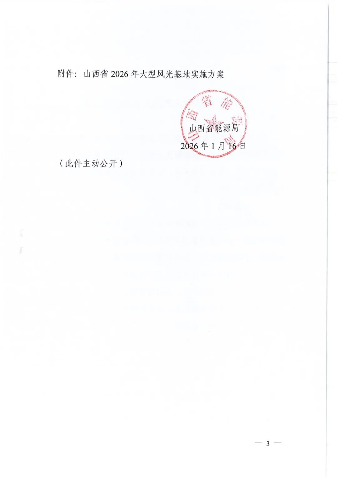 近日,山西省能源局发布《关于印发<山西省2026年大型风光基地实施方案>的通知》。