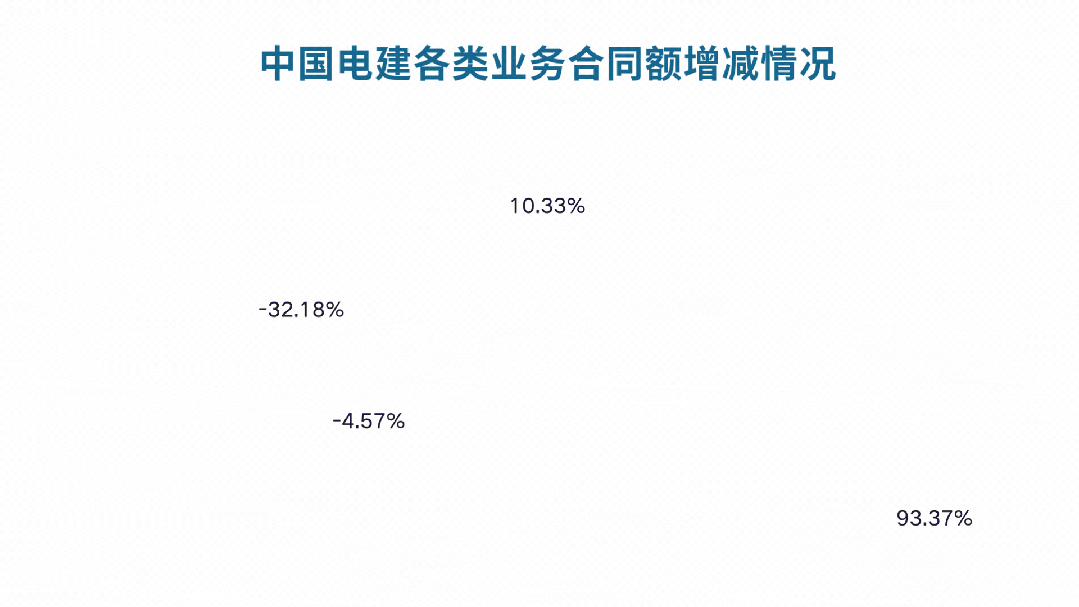 中国电建能源电力业务占总合同额63.1%,新签合同额同比增长10.33%,成为绝对增长引擎。其中新能源与抽水蓄能占能源电力业务超80%。