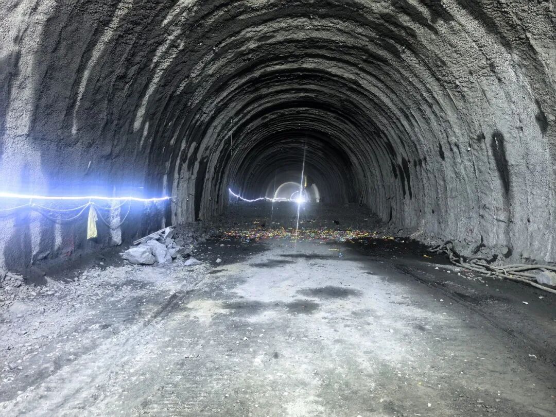 项目自开工以来,项目部全体参建人员凝心聚力、锐意进取,以高度的责任感与使命感投身工程建设。面对工区大风频发导致的频繁断电、雨季泥石流与滑坡等地质灾害的严峻挑战,以及隧道开挖中围岩破碎、地下水发育等复杂地质难题,项目团队始终坚持“安全为先、质量为本、科学组织、精细管控”的管理理念,精准施策、靶向发力,全面筑牢施工安全与质量双防线。面对复杂的地质条件和恶劣的施工环境,通过“管超前、严注浆、短进尺、强支护”等综合措施,稳扎稳打穿越不良地层,确保了工程建设的安全有序推进。依托先进测量控制体系与智能化监测手段,实现隧道轴线偏差精准控制在5mm以内,断面净空偏差严格控制在3mm以内,各项精度指标远优于规范允许偏差标准,达到同类工程领先水平。凭借卓越的施工组织能力、过硬的技术管控水平和精益求精的工匠精神,项目不仅实现了安全“零事故”、质量“零缺陷”的管控目标,更以实际行动诠释了“品质工程、标杆引领”的建设内涵。热布托隧道的顺利贯通,为整个两河口水电站库区交通工程建设注入了新的动力。