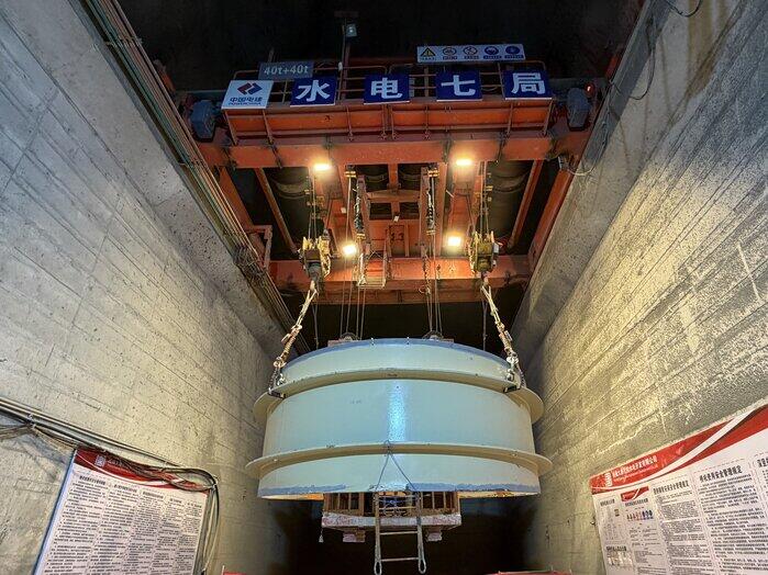 2号引水隧洞一级竖井竖直段长272.8米,钢管内径均为4.9米,共91小节,总重1576.546吨。首节钢管管长1.636米,重10.31吨,壁厚42毫米,采用2×40吨桥机进行吊装,历经2小时平稳落地。