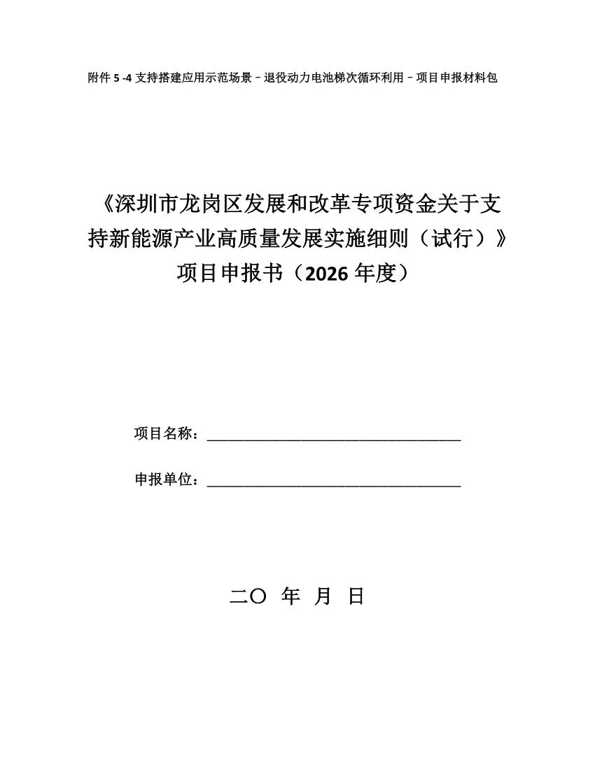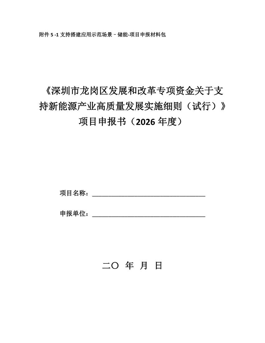 深圳市龙岗区2026年度发展和改革专项资金关于支持新能源产业高质量发展实施细则申报指南(2026年)