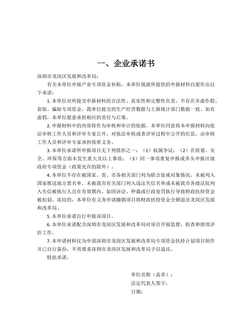 申报单位提交的生产经营数据真实有效。