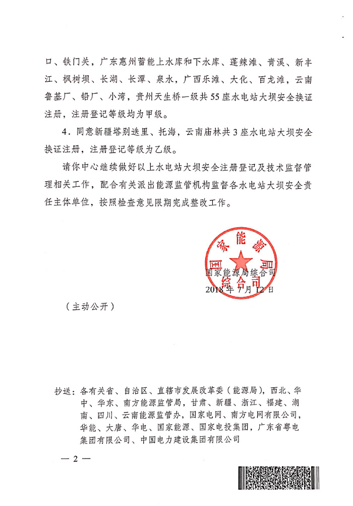 近日,能源局综合司发布关于同意仙居上库坝等67座水电站大坝安全注册登记的复函,原文如下: