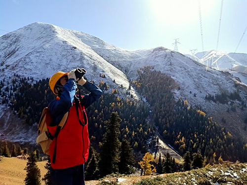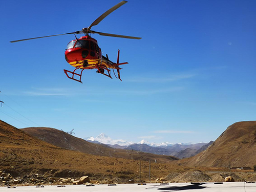 10月7日,西藏日喀则市嘉措拉山口,国网通航雄鹰高原直升机组在执行航巡阿里联网任务
