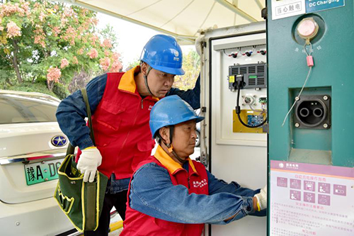 10月3日一大早,河南原阳县供电公司运维人员来到京港澳高速原阳服务区,仔细排查充电桩设备运行情况。节日期间,国网河南电力通过信息后台7*24小时监控充电桩平台运行情况,安排运维人员加强对充电桩的维护;在高速服务区安排值班保障人员,随时解决车主充电相关问题;与合作单位保持密切沟通,对公用、商用新能源车辆充电设施进行安全检查和技术指导,共同保障节日期间充电网络正常运行。