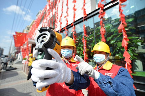 国网长春供电公司员工在10千伏桂林线开展测温工作,保障假日期间桂林路步行街、商业街正常用电