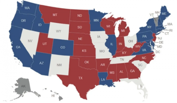 从选票分布来看,位于美国东西海岸的州普遍把选票投给了拜登,而特朗普在美国中部、南部地区则有着更大的优势。