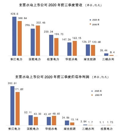 前三季度,三峡水利、湖北能源分别实现营收28.44、126.27亿元,分别同比增长238.57%、4.64%;分别实现归母净利润3.84、24.86亿元,分别同比增长126.31%、64.14%。