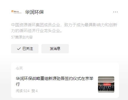 “华润环保”官方微信介绍显示,该企业已经成为中国资源循环集团的成员企业。而今,华润环保作为中国资源循环集团成员企业,将再获一项重要资产,转让方为国家电投旗下公司——中国电力。
