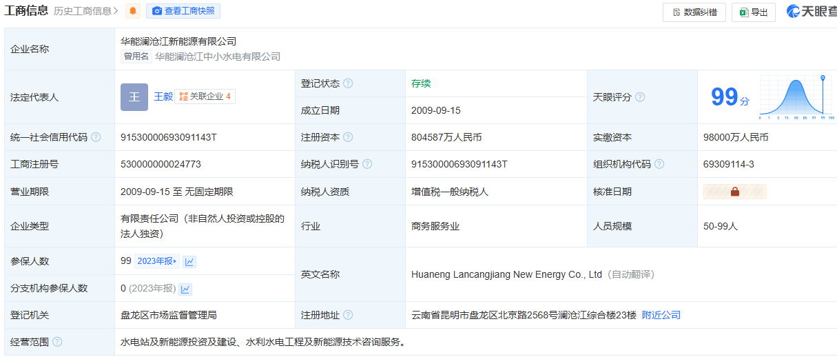 北极星电力网获悉,近日,华能澜沧江新能源有限公司发生工商变更,注册资本由9.8亿元人民币增至约80.5亿元人民币,增幅约721%。华能澜沧江新能源有限公司成立于2009年9月,法定代表人为王毅,经营范围为水电站及新能源投资及建设、水利水电工程及新能源技术咨询服务,由华能水电全资持股。