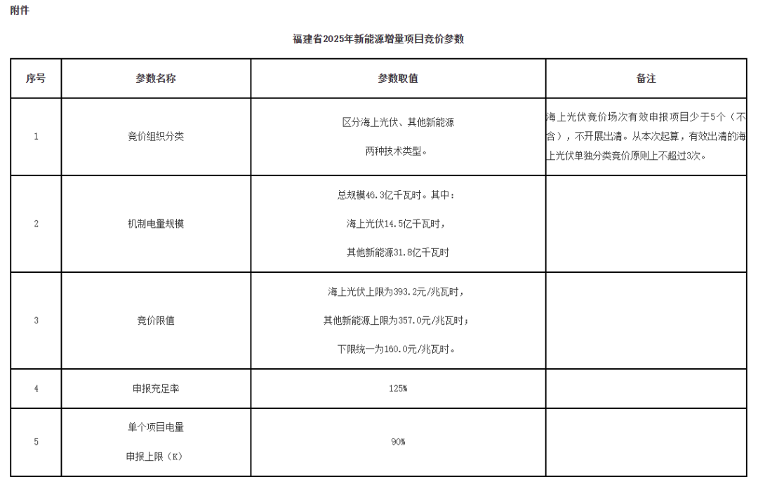 11月7日,福建省发展和改革委员会 国家能源局福建监管办公室发布《关于福建省2025年新能源增量项目竞价有关事项的通知》。