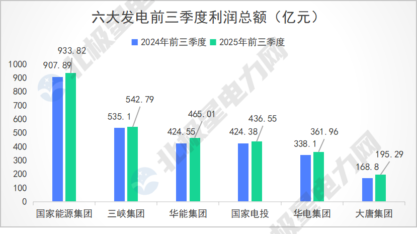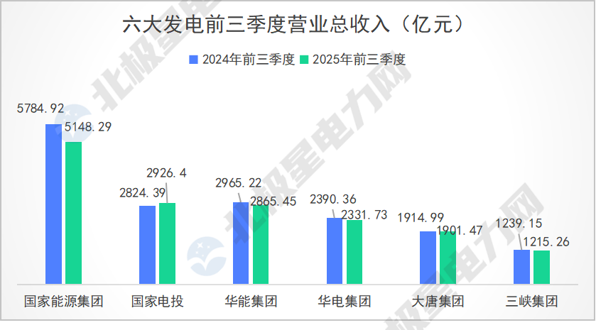 2025年前三季度,六大发电集团关键绩效数据如下:
