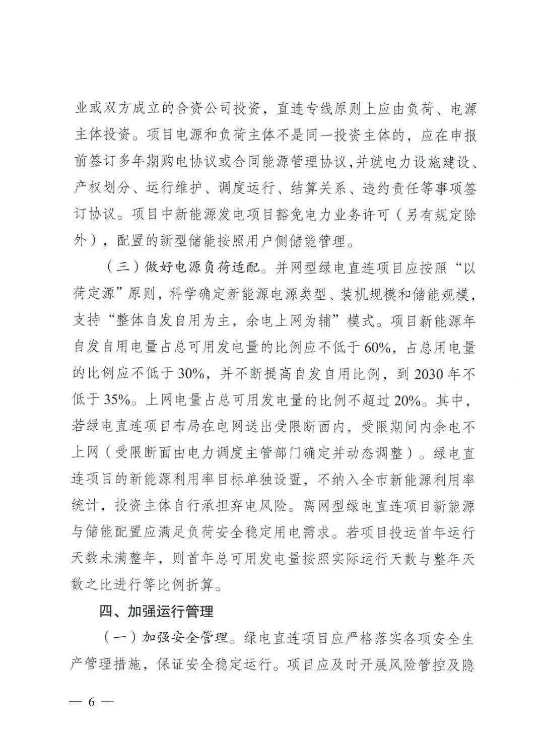 重庆市能源局发布关于征求《关于有序推动重庆市绿电直连发展有关事项的通知(征求意见稿)》意见的函,做好电源负荷适配。并网型绿电直连项目应按照“以荷定源”原则,科学确定新能源电源类型、装机规模和储能规模支持“整体自发自用为主,余电上网为辅”模式。项目新能源年自发自用电量占总可用发电量的比例应不低于60%,占总用电量的比例应不低于30%,并不断提高自发自用比例,到2030年不低于35%。上网电量占总可用发电量的比例不超过20%。其中,若绿电直连项目布局在电网送出受限断面内,受限期间内余电不上网(受限断面由电力调度主管部门确定并动态调整)。绿电直连项目的新能源利用率目标单独设置,不纳入全市新能源利用率统计,投资主体自行承担弃电风险。离网型绿电直连项目新能源与储能配置应满足负荷安全稳定用电需求。若项目投运首年运行天数未满整年,则首年总可用发电量按照实际运行天数与整年天数之比进行等比例折算。