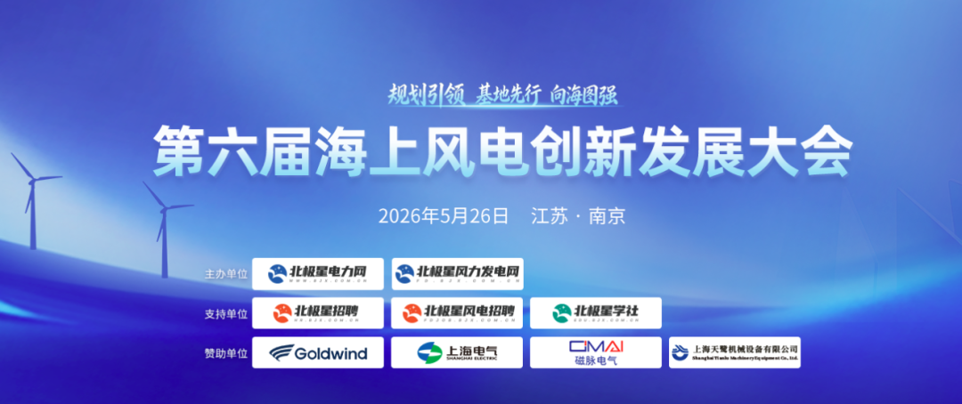 为深入贯彻落实“十五五”规划目标,凝聚行业共识,共商海上风电高质量建设路径,北极星电力网、北极星风力发电网拟于2026年5月26日在江苏南京召开第六届海上风电创新发展大会,将邀请国家及地方政府主管部门、智库专家、规划与建设单位、产业链龙头企业、科研院校及金融机构代表,共绘海上风电高质量发展蓝图,解锁深远海、基地化、供应链、AI 技术等系列机遇和挑战,为产业跨越式发展注入强劲动能。